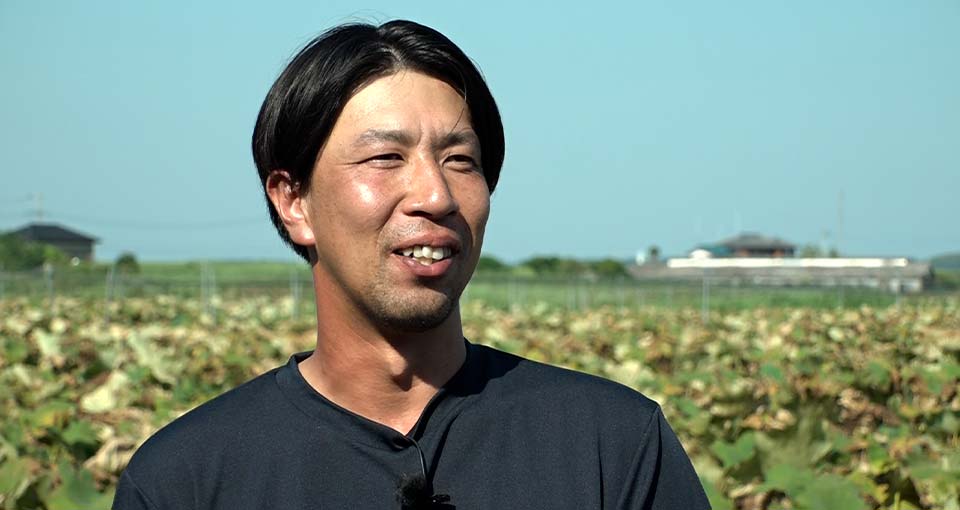 「入社当初は農業に興味がなかったがいまではいいれんこんが出来たときは幸せを感じるし、食べる人たちの喜ぶ顔が思い浮かぶ。」とれんこん生産への自信を語る。