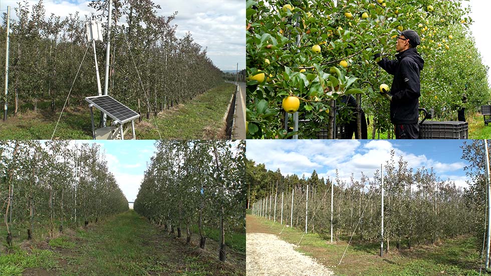 日本農業の現場では、定植から約2年で収穫が始まる。剪定や収穫といった作業も高密植栽培の整列樹形により効率化され、労働力コストの抑制と収量向上の両立が可能になっている。