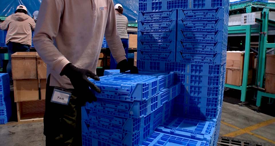 軽量な折りコンでの納品を採用