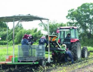 ベジエイトでは、水稲を中心にさつまいもやごぼう等の作業委託も請け負っている。全ての業務を委託しているわけではなく、播種や除草、収穫等の手がかかり、人手が必要な業務を中心に声がかかるという。「ただ作業代行をするだけでなく、効率化を図りながら、試行錯誤し作業委託を受けている」と重冨代表は話す。実際のところ、農作業の機械化を進めており、なるべく人が土に下りない(機械から降りない・ドローンなどを活用して圃場に入らない)農業を意識しているという。農作業にあまり人手がいらない状態になれば全体の効率化が図れるかというと、そうでもないという。というのも、圃場での作業(播種や収穫)を機械化できても、収穫後に実施する選果作業はなかなか機械化が難しいとのことで、ここには人手をかけていると話す。