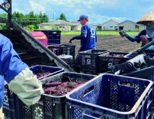 ベジエイトでは、水稲41haやさつまいも27haをはじめとして、大根やごぼう、ホウレンソウを生産している。全ての生産面積を合計すると、100haを超え、地域一体の生産を担う、トップランナーと言っても過言ではない。取扱量はさつまいも3,500トンをはじめとして、個人生産者ではさばききれない数量を生産・販売している。また、生産だけでなく、集荷業務も実施しており、産地から消費地へ向けた流通網を構築し、輸送・販売も担っている。まさに、地域の大黒柱のような存在だ。